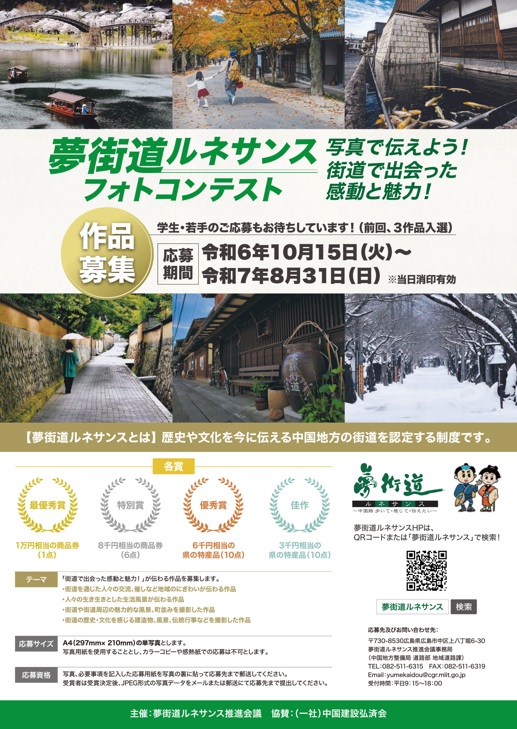 また、若い世代からの応募促進を意識し、「写真で伝えよう!街道で出会った感動と魅力!」というメッセージを中心に、学生や若者にも身近に感じてもらえるデザインとしています。